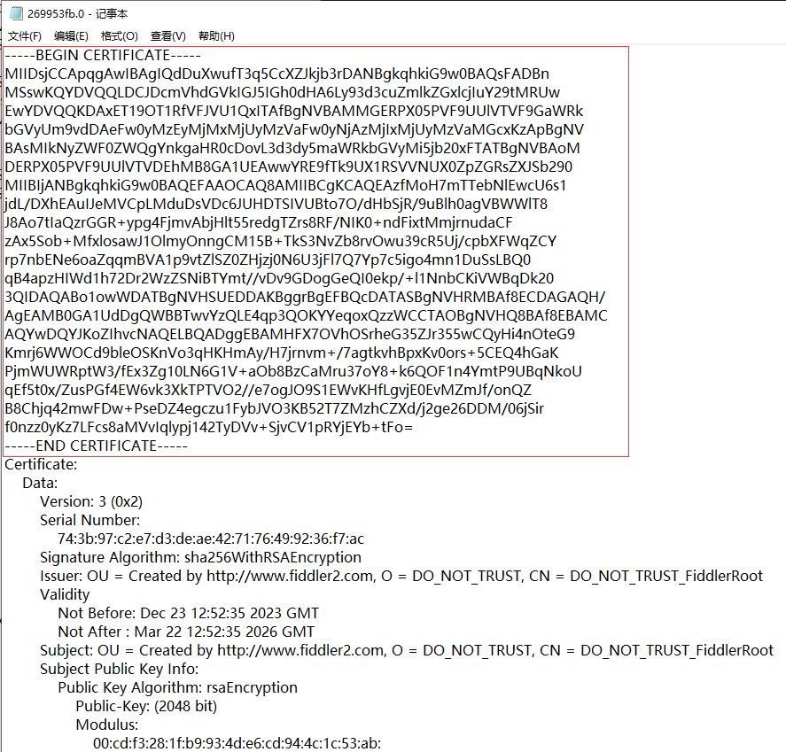 使用记事本打开'269953fb.0',将红框内代码剪切到文件的开头